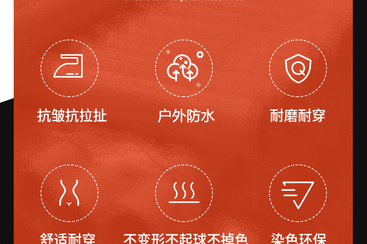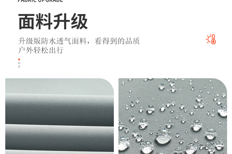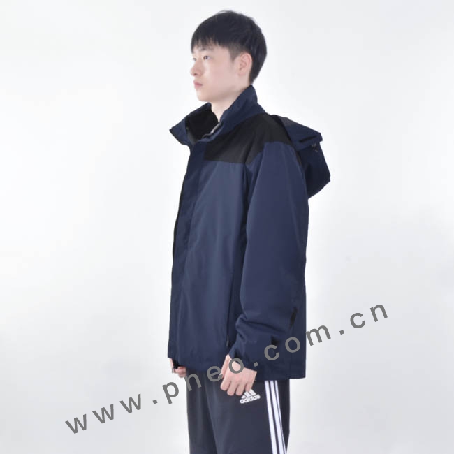 防潑水科技面料,類(lèi)似荷葉效果,有效的阻擋小雨對(duì)人體運(yùn)動(dòng)的干擾,保持干爽舒適