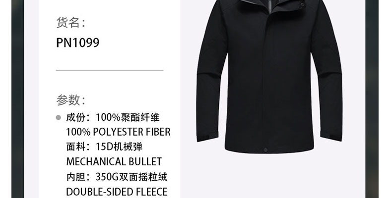 沖鋒衣三合一可拆卸搖粒絨內膽 PN-1099#