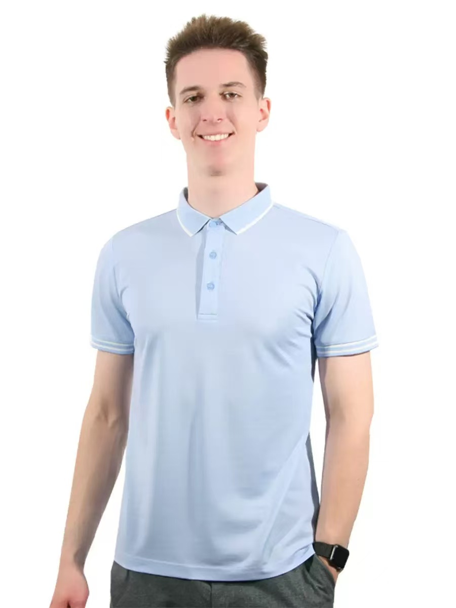 選擇純色系(白、藍(lán)、灰)絲光棉Polo衫