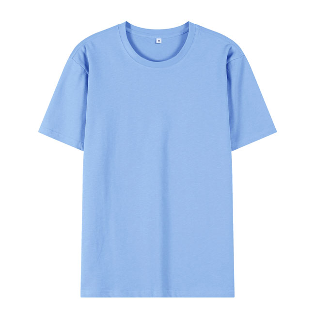 絲光棉圓領T恤的優勢還體現在其良好的耐用性上。相比普通純棉T恤,它的紗線強力增大,不易斷裂,面料挺括、抗皺性能好、不易起球起皺,多次洗滌后仍能保持較好的版型和色澤。而且,絲光棉的染色性能提高,色澤鮮亮,不易掉色,即使經過長時間的穿著和洗滌,依然能保持鮮艷的色彩。